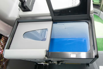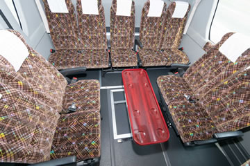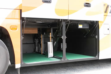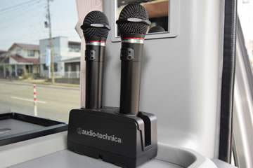 冷蔵庫・カーポット・テレビ・DVD/CDプレーヤー・客席用ワイヤレスマイク・貫通式大型トランク